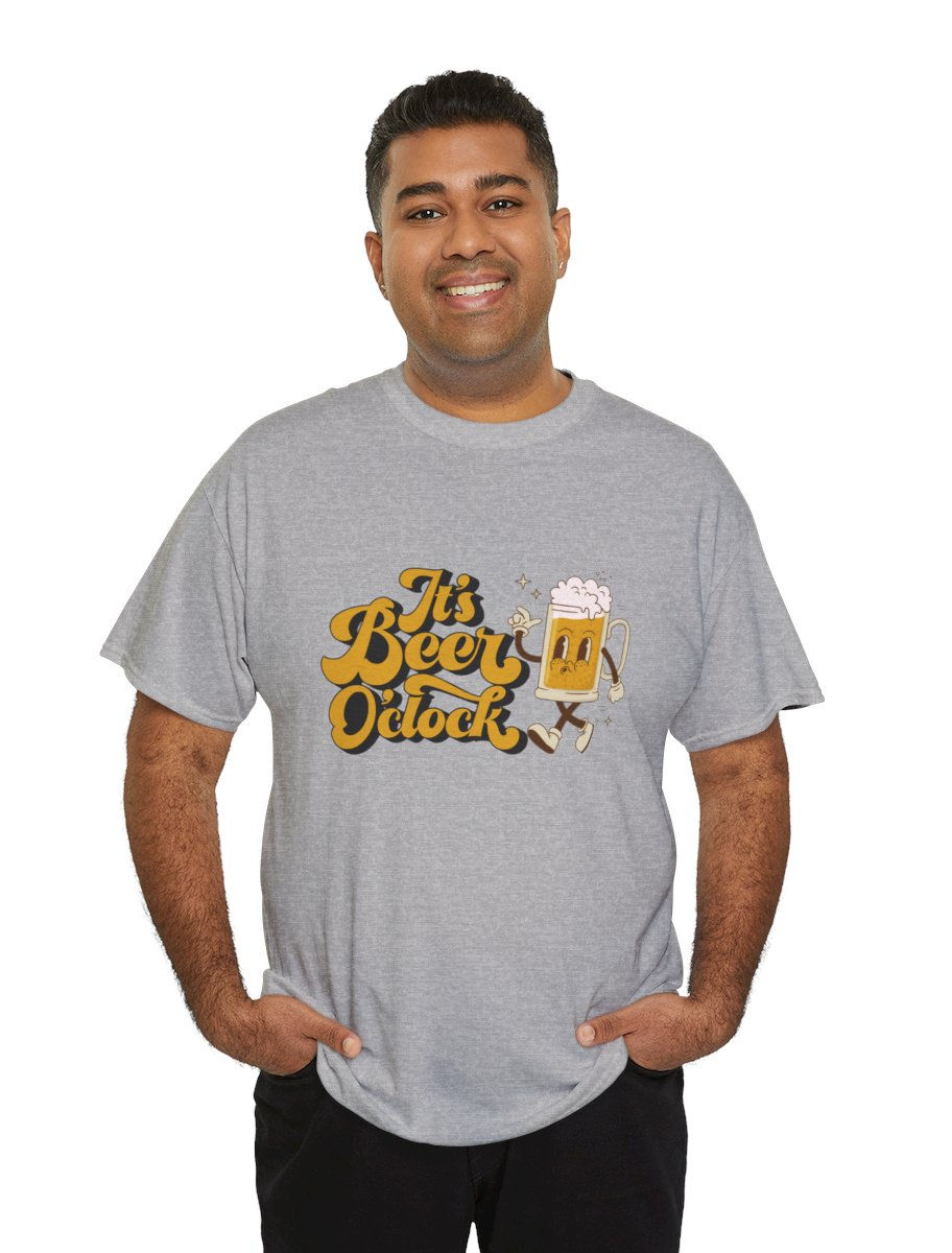 This Beer O'Clock Funny T-Shirt is perfect for weekend parties and happy hours. With a cartoon beer illustration and multiple color options, this tee exudes a relaxed and fun vibe. It is ideal for those who enjoy socializing and unwinding with a cold drink in hand. Great for casual gatherings, barbecues, and vacations.
