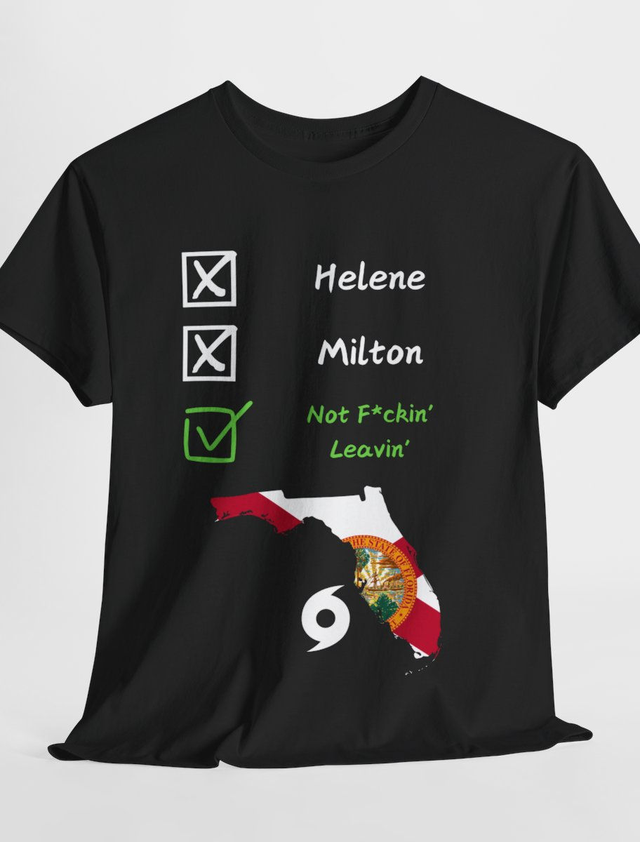 Florida Hurricane Season 2024 T-Shirt, Checklist, "Not F*ckin' Leavin", Unisex