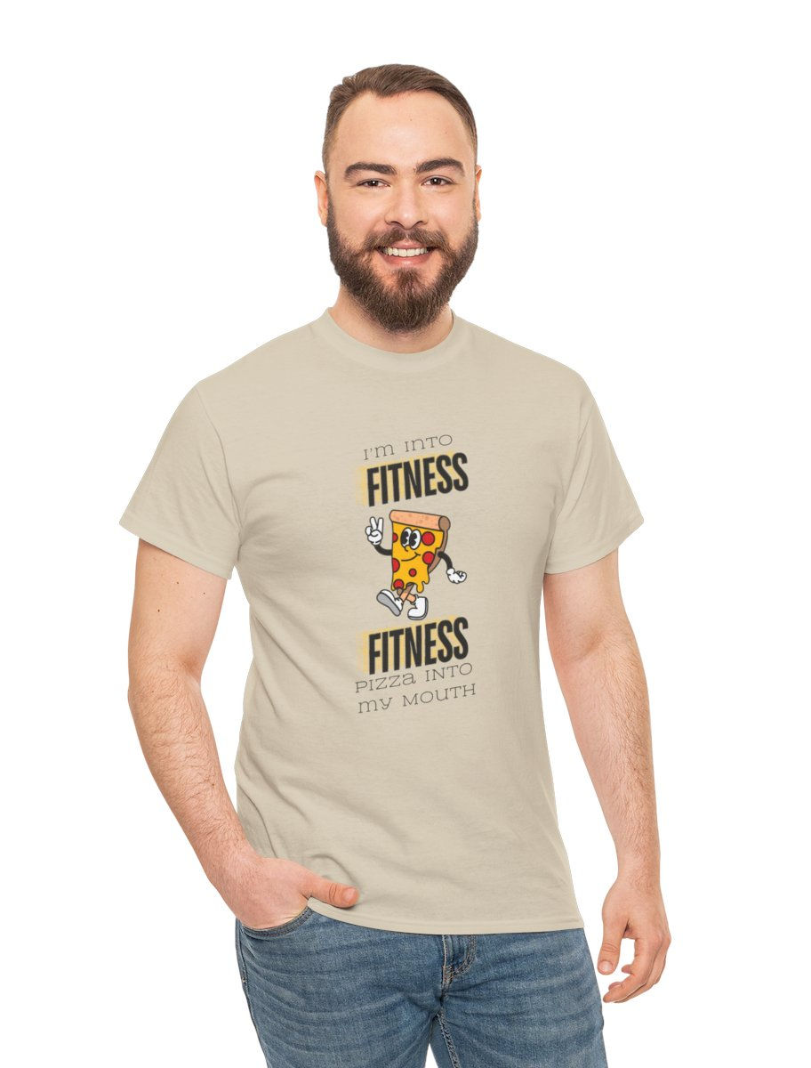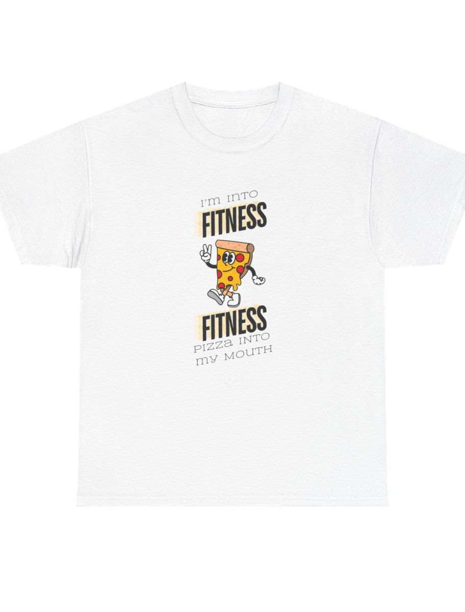 Funny Fitness Pun, Workout, Gym, "Fitness Pizza in My Mouth" Unisex Cotton Tee