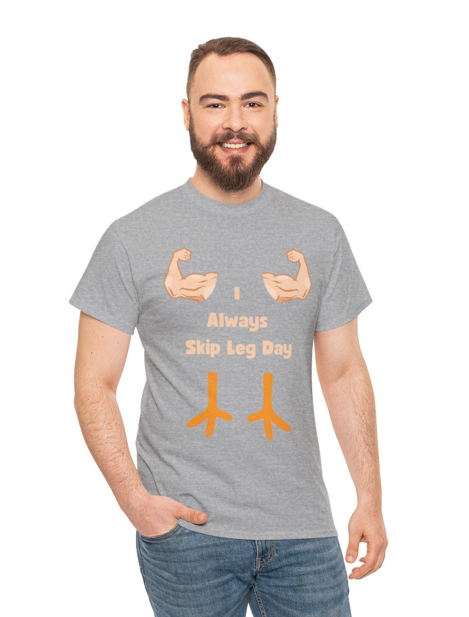 Funny Gym, Weightlifting, Fitness, Workout Cotton Tee, "I Always Skip Leg Day"