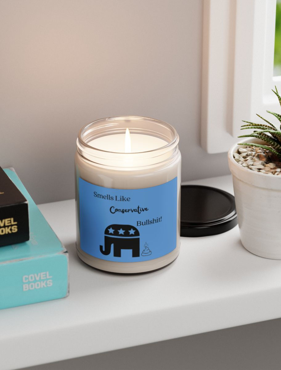 Funny Political Joke Candle, "Smells Like Conservative Bullshit", 9 oz.