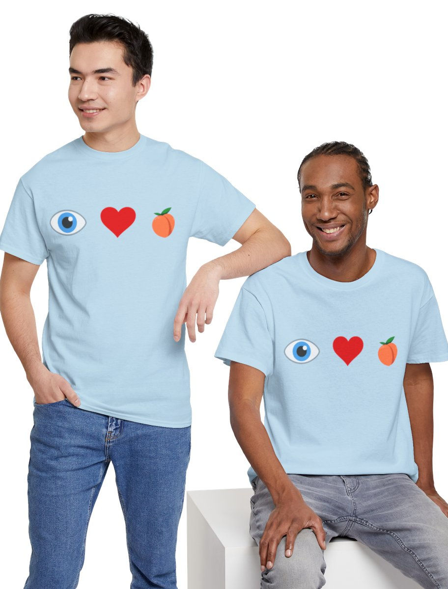 I Heart Peaches Funny Graphic Emoji T-Shirt, Humor, Multiple Colors and Sizes