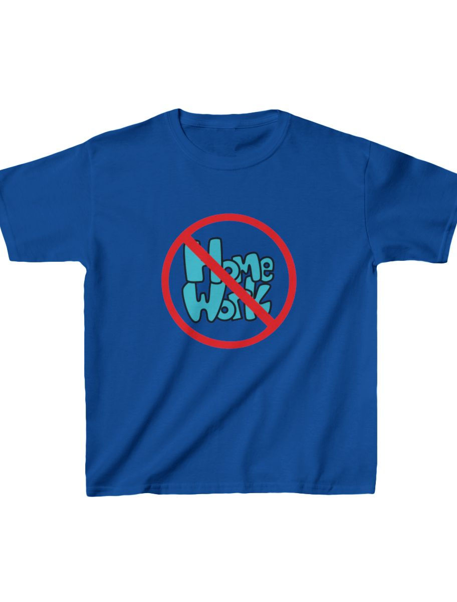 Kids Funny "No Homework" Cotton Tee, Back to School, Multiple Color Options